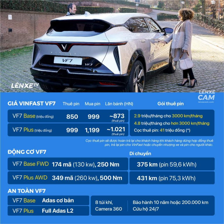 VinFast VF7 là mẫu xe ô tô điện cỡ trung mạnh mẽ, hiện đại, đáp ứng nhu cầu của nhiều đối tượng khách hàng. Xe có thiết kế ấn tượng, nội thất rộng rãi, tiện nghi hiện đại, động cơ mạnh mẽ và nhiều tính năng an toàn cao cấp.