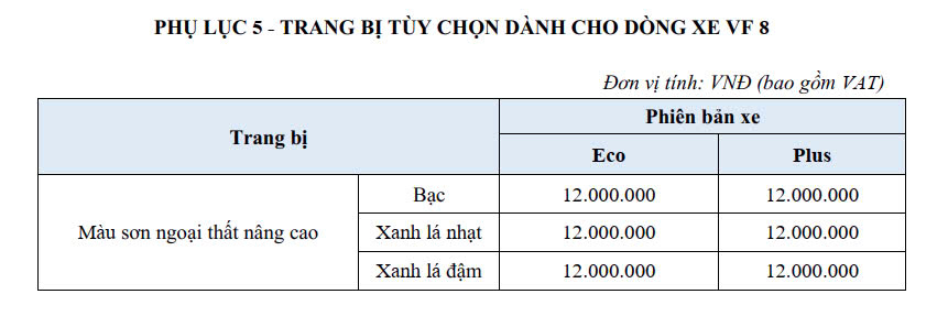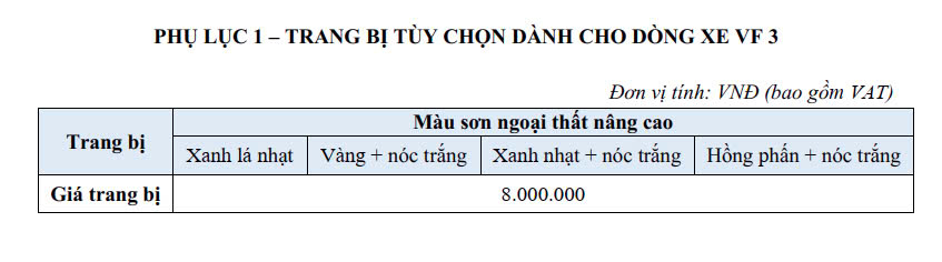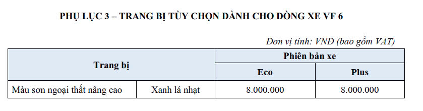 Chính sách bán hàng tháng 03/2025 các tuỳ chọn màu theo xe VinFast Thủ Đức - Hồ Chí Minh